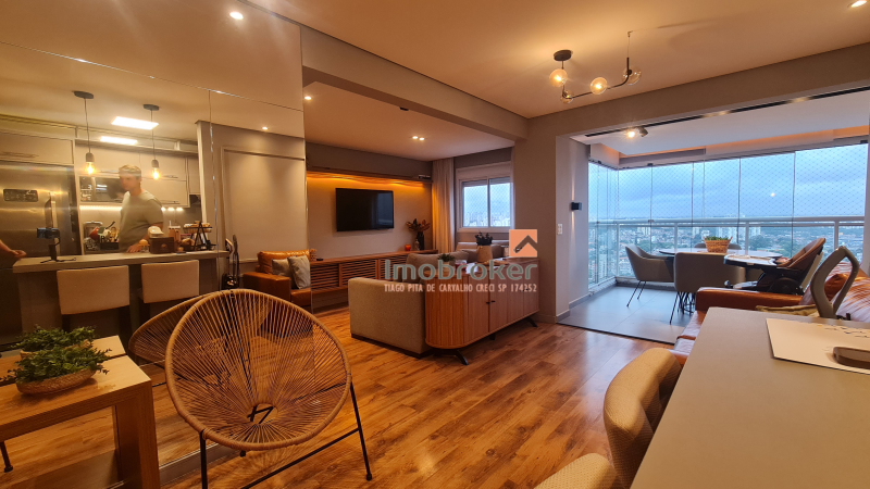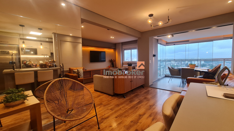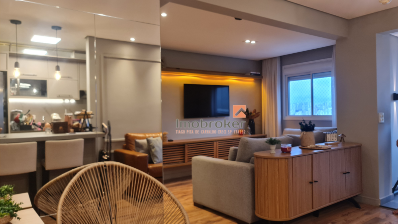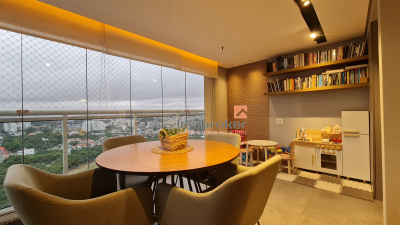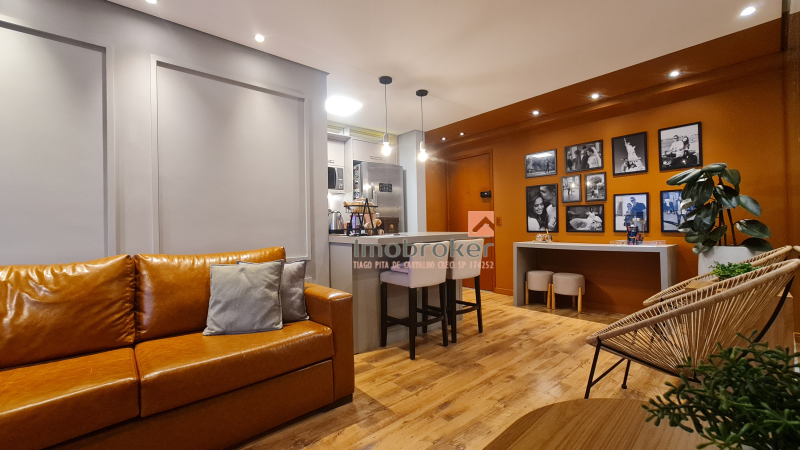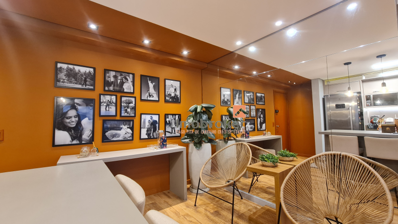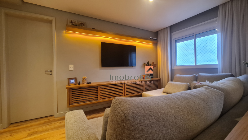 Logo ao entrar, o imóvel transmite uma sensação de cuidado e sofisticação. O living é amplo e funcional, com excelente aproveitamento de espaço para estar e jantar, e uma composição que evidencia um projeto de interiores bem executado: marcenaria sob medida, painel para TV com rack ripado suspenso e iluminação indireta em LED, criando um clima elegante e acolhedor. A paleta de materiais observada nas fotos reforça o padrão do apartamento: piso amadeirado, tons neutros, detalhes em madeira e iluminação cênica que valorizam volumes e texturas. É o tipo de ambiente que “encaixa” tanto um estilo mais minimalista quanto uma decoração mais autoral.