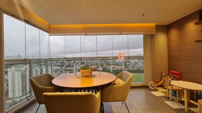 A varanda é um dos grandes destaques: envidraçada, com sensação de “ambiente extra” e ótima integração com a área social. Pelas imagens, o apartamento conta ainda com rede/tela de proteção no fechamento, agregando segurança e tranquilidade para famílias com crianças e pets.